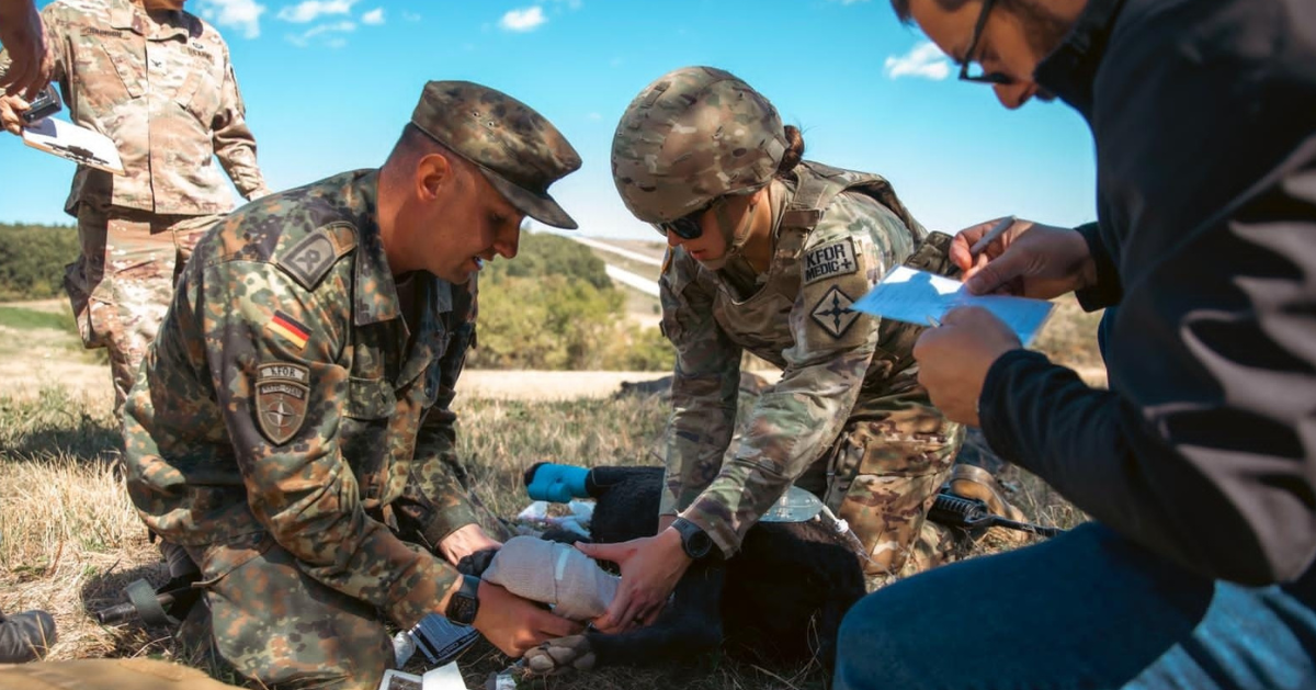 Personeli mjekësor amerikan dhe gjerman nga Komanda Rajonale Lindje e KFOR-it ka zhvilluar një trajnim mjekësor për kujdesin ndaj qenve shërbyes K9 në Kampin Bondsteel.