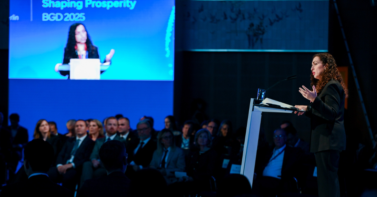 Presidentja e Kosovës, Vjosa Osmani, në sesionin e liderëve të Berlin Global Dialogue, theksoi rëndësinë e rolit të Kosovës brenda Bashkimit Evropian. Ajo nënvizoi se pranësia e Kosovës në familjen e BE-së sjell një partner që e kupton nga përvoja e parë rrezikun që paraqesin forcat e dëmshme dhe që është e përgatitur të kontribuojë në mbrojtjen e vlerave demokratike.