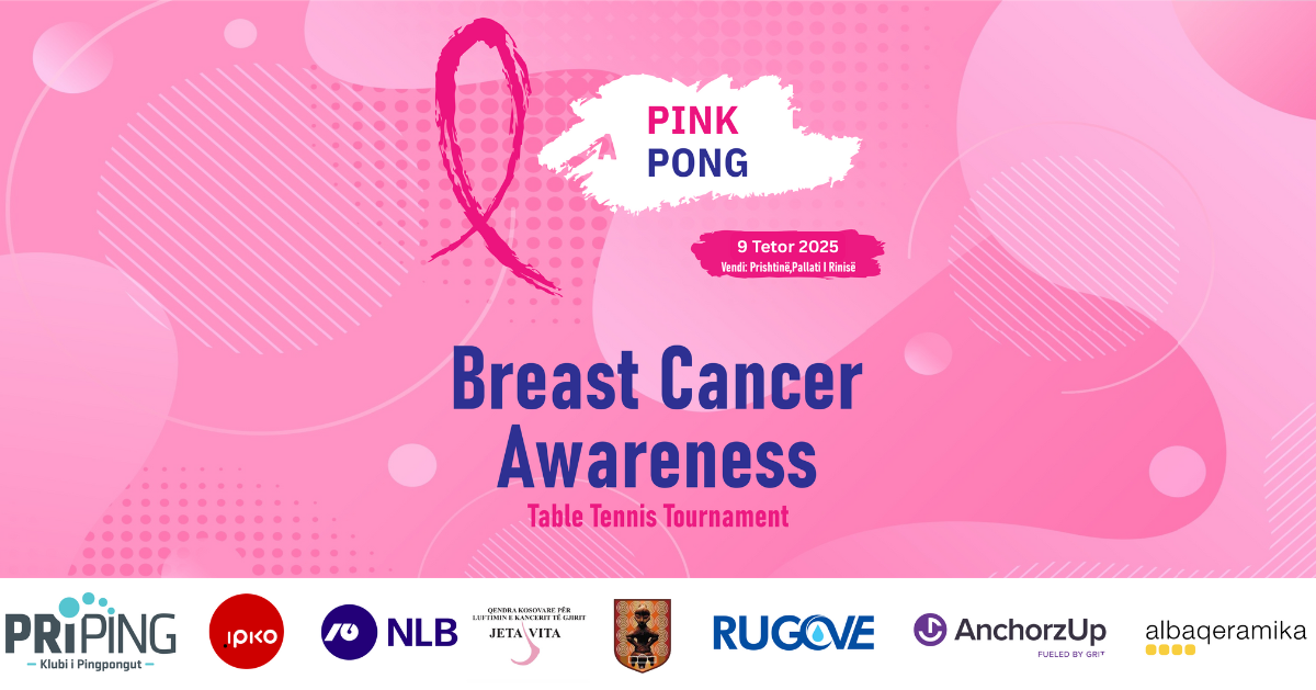Në kuadër të muajit të vetëdijesimit për kancerin e gjirit, Klubi i Pingpongut “Priping”, në bashkëpunim me Qendrën Kosovare për Luftimin e Kancerit të Gjirit ‘Jeta Vita’ organizon sot turneun tradicional “Pink Pong – Breast Cancer Awareness Tournament”.