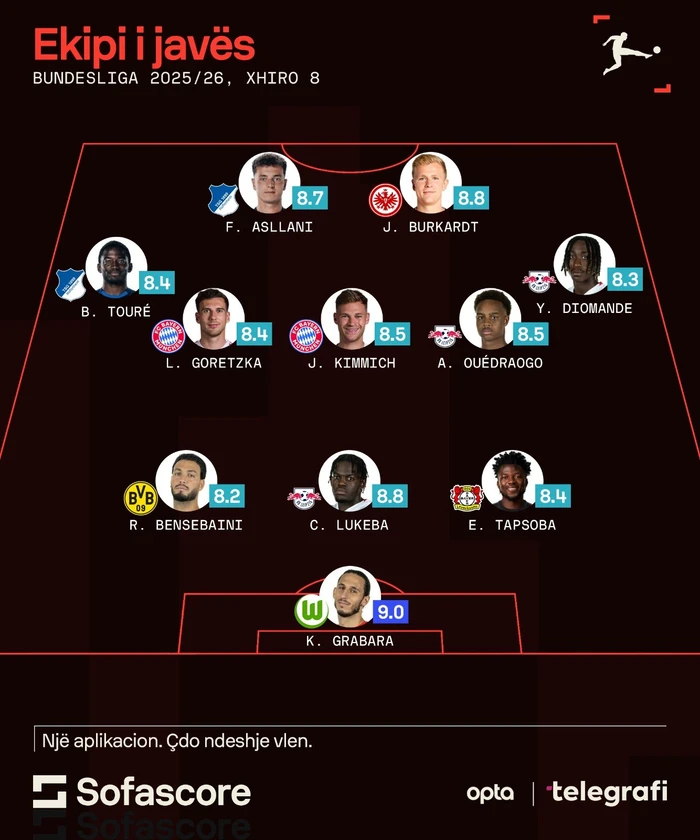 Falë paraqitjes fantastike në fundjavë, Asllani ka zënë vend në formacionin e javës në Bundesliga nga SofaScore.