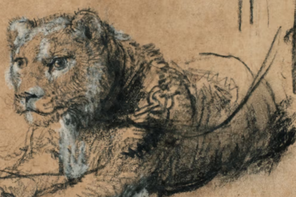 Një vizatim i rrallë i Rembrandtit, Young Lion Resting (Luani i ri…